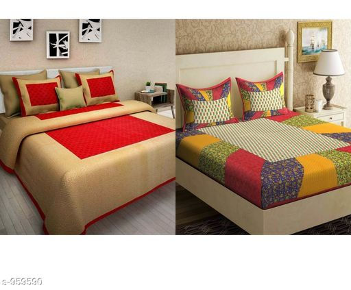 Cotton Printed 90x100 Double Bed sheet with 2 pillow cover ( Combo of 2 )