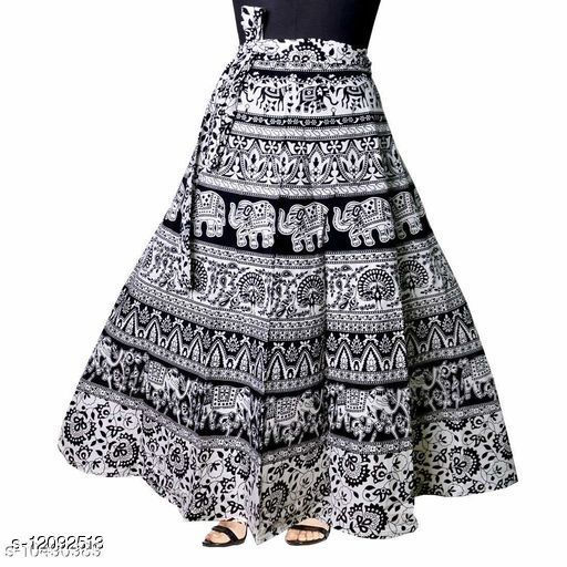 Jaipuri Print Cotton Black Ethnic Wrap Around Skirt For Women/ Grils