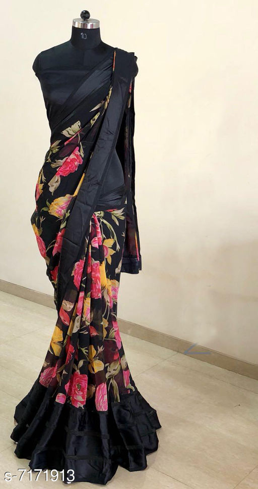 Most Beautiful Satin & Georgette Printed Saree With Blouse